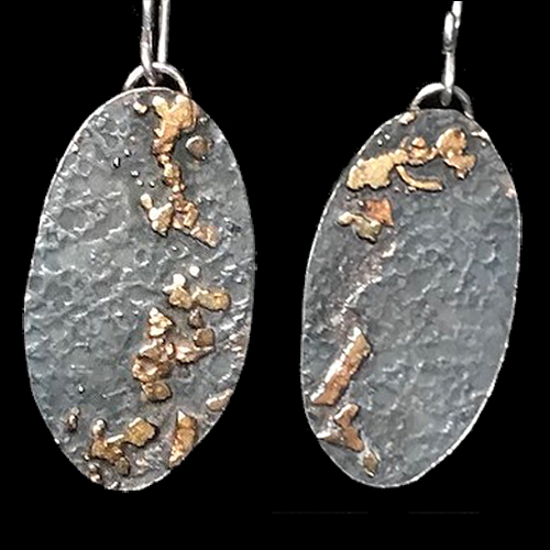 Another class creation that I was able to finish on my own. Earrings with dark patina on Argentium silver highlighted with 22k gold.